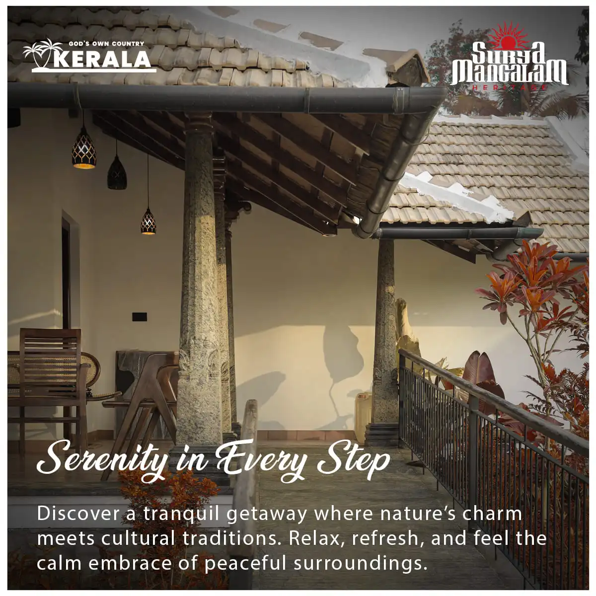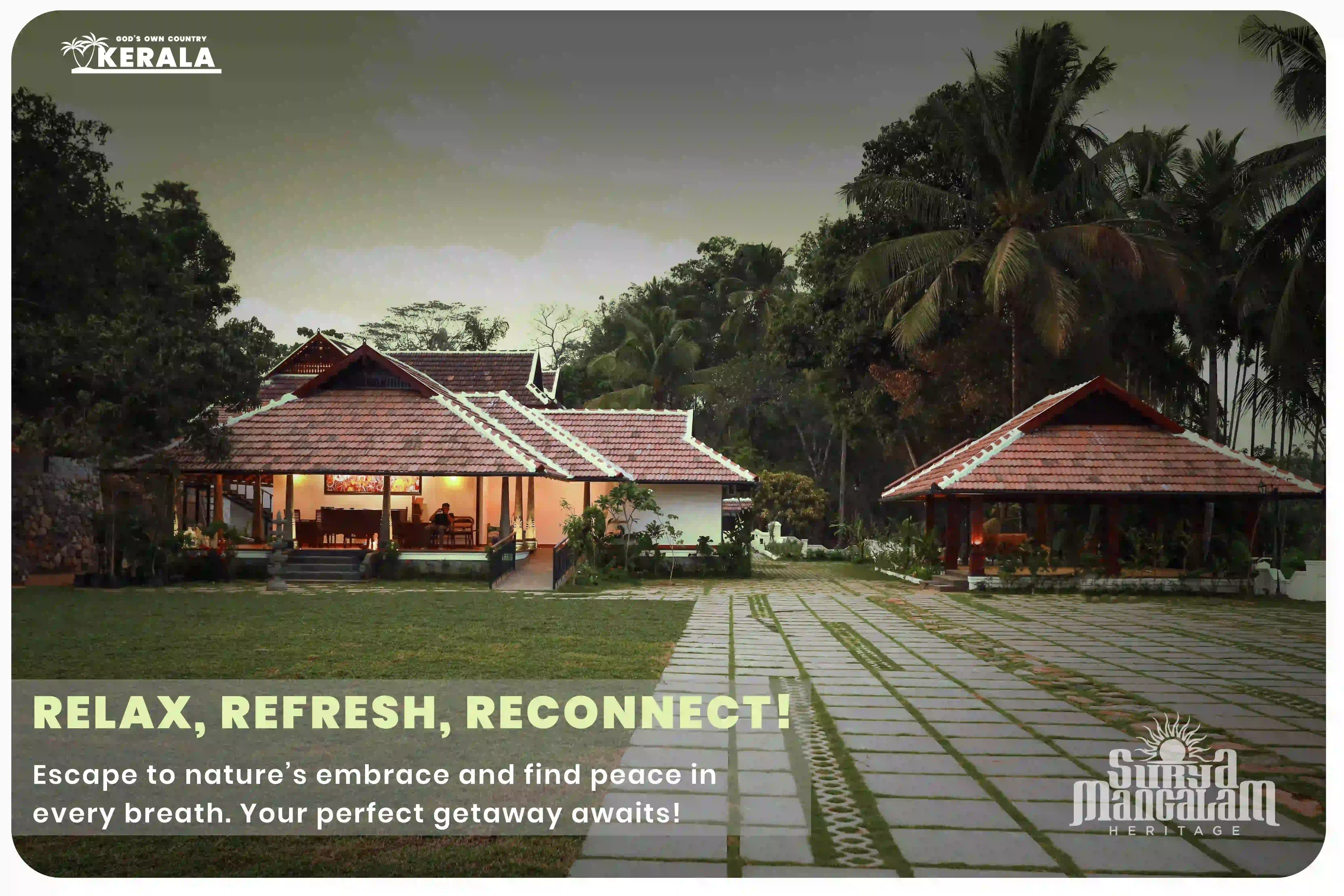 Reborn in luxury, Surya Mangalam Heritage was formerly known as "Koyamangalath House", originally constructed in 1840. Preserving its original charm and historical significance, it has been thoughtfully transformed into a modern heritage resort with premium facilities. Nestled in the picturesque landscape of Ottapalam in Kerala's Palakkad district, the resort offers all the comforts of a luxury getaway while remaining true to its rich cultural roots.